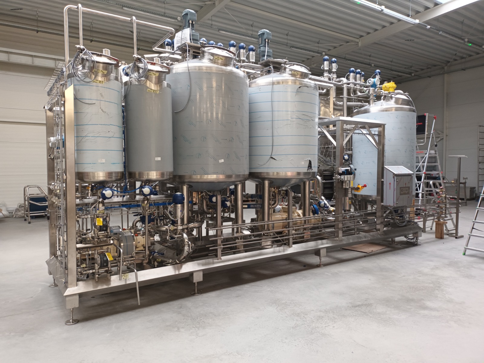 Układ rozładunku surowców, przygotowania mieszanki i przesyłu produktu gotowego do rozlewu do opakowań sprzedażowych.